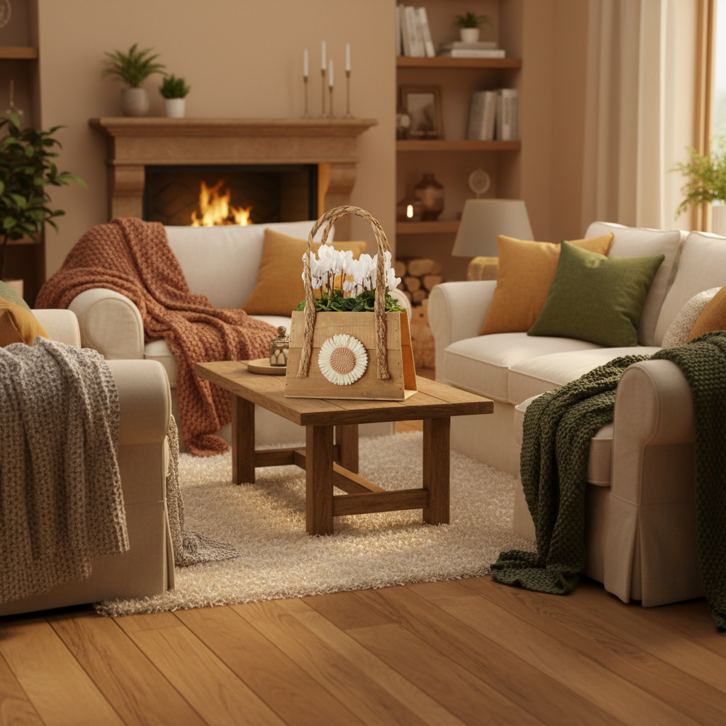 Carry a touch of floral elegance into your home with our uniquely stylish Rustic Charm Cyclamen Handbag Planter. This delightful decorative piece features a beautifully crafted wooden planter, shaped like a chic handbag with rustic woven handles and a sweet flower embellishment. Nestled inside is a vibrant cyclamen, with its stunning butterfly-shaped petals and rich green foliage, ready to bring life and colour to any room.