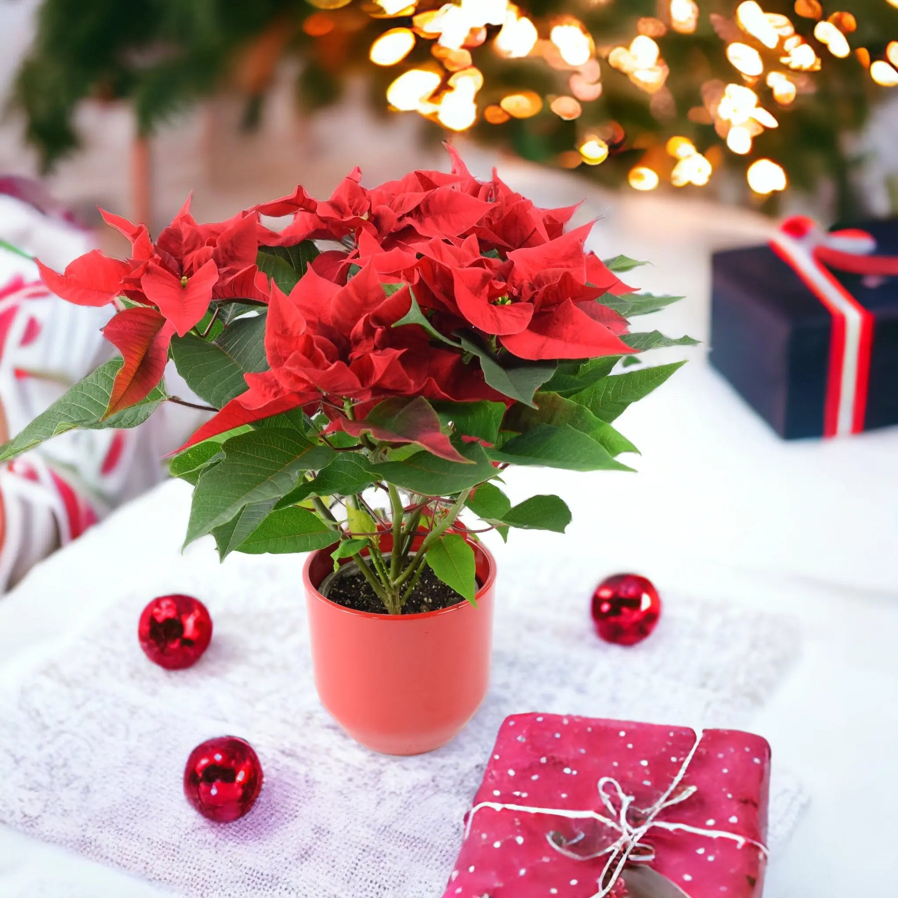 Poinsettia Red in 13cm Red Ceramic Pot Gift